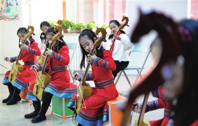 1月4日,杏花岭区化工路小学师生正在演奏经典的马头琴曲,以悠扬的琴声,为冬奥喝彩。 记 者 牛利敏 摄