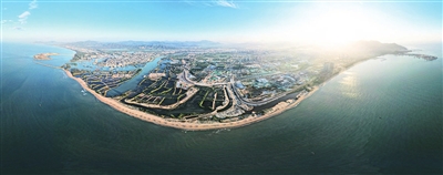 这是1月6日拍摄的正在建设中的崖州湾科技城,海南自贸港建设项目2022年度第一批集中开工仪式在此举行(无人机照片)。