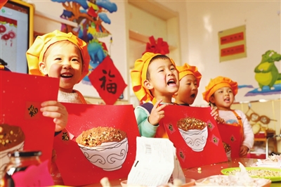1月7日,老军营街道新南一社区和山西医科大学幼儿园开展“话说腊八”主题活动,通过亲身体验让孩子们了解中华传统文化。 张昊宇 摄