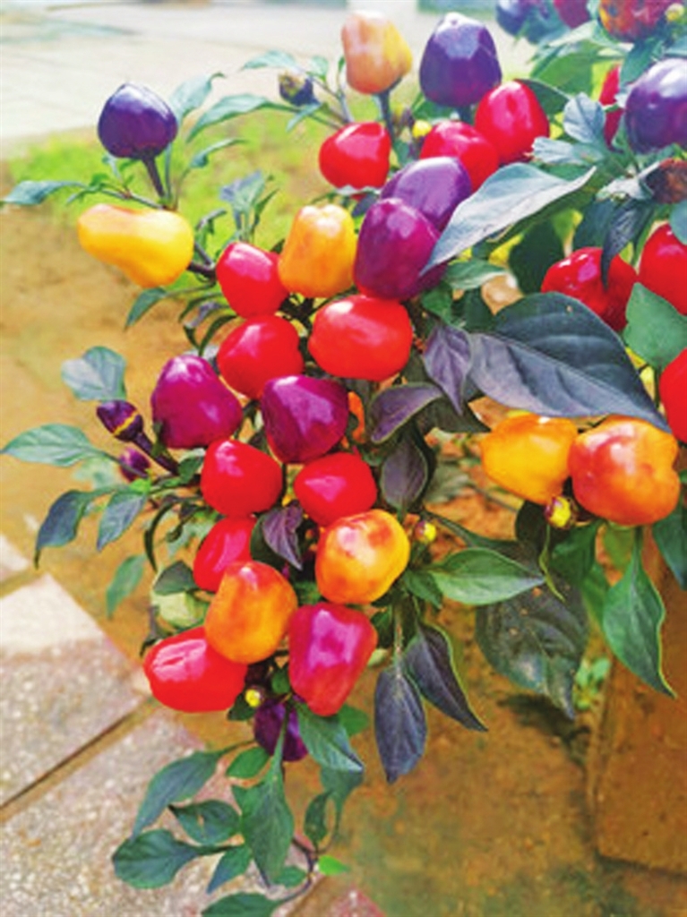 原来,这就是五色椒,辣椒族中的贵族。只怪我孤陋寡闻。如今欣赏着它们,让我欣喜不已。
