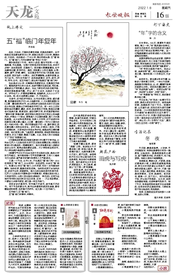 说完画虎,我们再看写虎。施耐庵堪称写虎达人,《水浒传》有四次老虎出场,除了大家熟知的景阳冈武松打虎,还有李逵沂岭杀四虎、解珍解宝兄弟登州猎虎,其实小说开头还有一次洪太尉龙虎山遇虎。《西游记》和《聊斋志异》里对老虎都有十分精彩的描写。