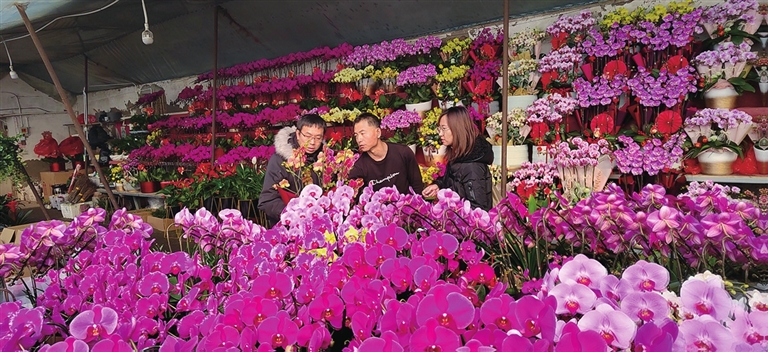 市场内还新增了几家有特色有格调的花店。“国兰轩”就是今年元旦刚开业的一家集鉴赏、销售国兰于一体的花店。钟爱兰花的老板何孔来不厌其烦地向顾客介绍着品种、花色和习性,每一株都如数家珍。仅元旦假期,他就卖出五六十盆兰花。同时,他还准备了充足的货源,为日渐临近的春节做准备。
