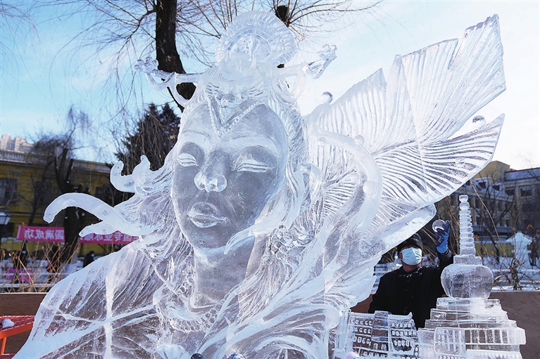 当日,以“冬奥之光,多彩冰灯”为主题的第四十一届全国专业冰雕比赛在冰城哈尔滨市的兆麟公园收官。60名冰雕师组成的20支代表队进行了3天的竞技角逐,最终冰雕作品《争鸣》和《翎羽思乡》摘得本届比赛桂冠。 新华社 发