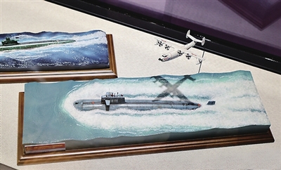展陈方式上,朱肖峥和师伟也颇下了一番功夫。这场展览,是专委会成立后打造的“微缩艺术大匠沙龙”系列活动的第一场。举办展览的模型主题咖啡厅,原本是一位模型爱好者朋友开的,意在给大家提供交流的场地,此次又专为活动打造一个展厅。师伟介绍:“我们为每件作品‘定制’灯光,精确地呈现模型创作者的表达。比如《中国091型核潜艇》,用顶光将飞机的影子投在潜艇上,就有一种飞机正在起落的动态感,这是一般展馆里统一的光线没法做到的。”