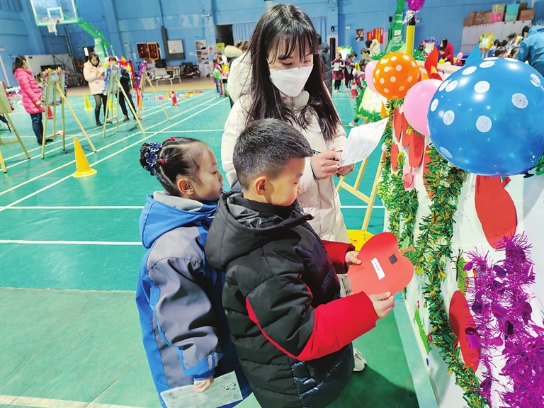 在“果园之旅”,孩子们更是收获满满。他们一会儿猜字谜,背古诗;一会儿看图说话,讲故事;一会儿开动脑筋认位置……在轻松的环境中,体验到了成功的快乐。闯关成功的孩子们拿着画满小红星的评价单,在宝物领取处换取了小礼物。
