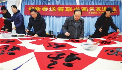 1月16日,中国书画报、太原河北商会书画院等单位的书画家们来到杏花岭区电力小区,开展迎新春写春联活动,给这里的居民送上新春的祝福。 记者 牛利敏 摄