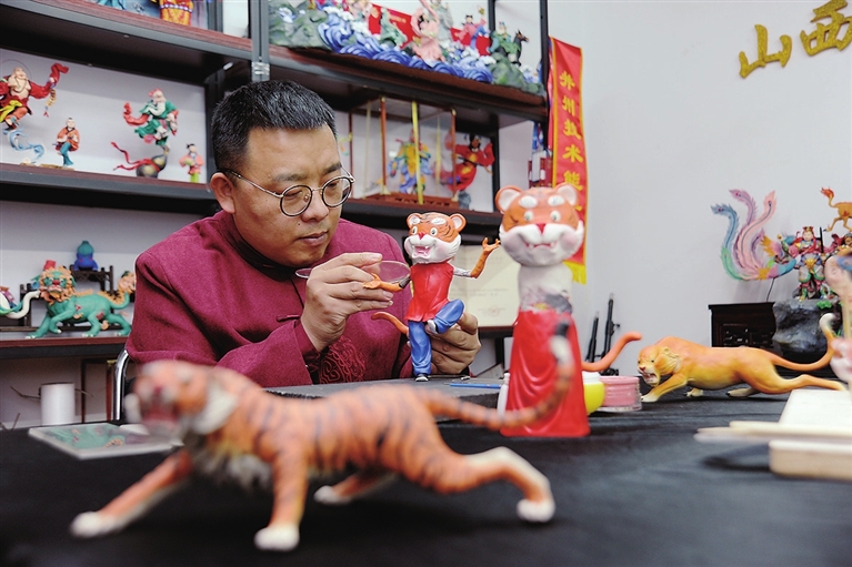 1月20日,市级非遗传承人卫兴安正在为迎接虎年创作面塑作品——虎娃,以此展现对美好生活的向往。 徐浩轩 孙学起 摄