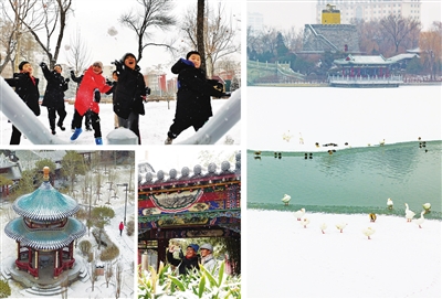 1月21日,我市迎来2022年首场降雪,市民们纷纷走出家门,赏景戏雪,享受瑞雪带来的乐趣。韩双喜 李学军 牛利敏 摄
