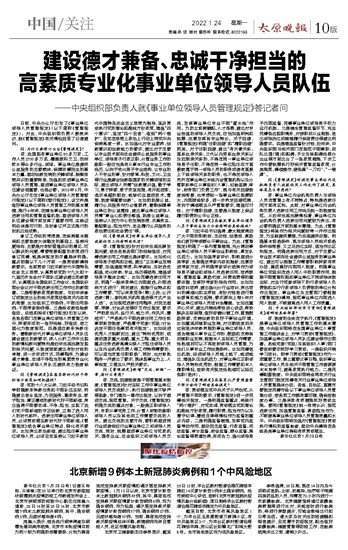 ~~~——中央组织部负责人就《事业单位领导人员管理规定》答记者问