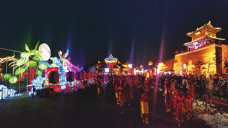 流光溢彩霓虹海,火树银花不夜天。夜幕降临,步入太原古县城,只见一组组花灯立于城墙脚下,交相辉映,共同组成了美丽的花灯海洋,花灯优美的造型、精细的做工,让人赏心悦目、流连忘返。太原古县城的花灯包括“百年辉煌·激流勇进”“三晋文化·璀璨晋阳”“流光非遗·人文山西”“锦绣太原·灯耀古城”“美好生活·追逐梦想”“憧憬未来·自信自强”“氛围营造·树木亮化”等七大主题,集合了多种文化元素,内涵非常丰富。
