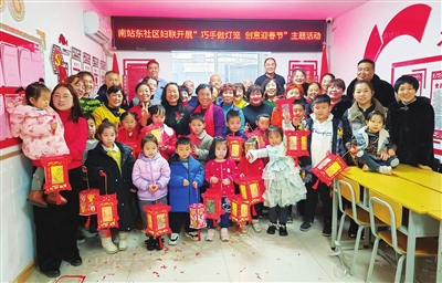 1月24日下午,北营街道南站东社区组织开展“巧手做灯笼 创意迎春节”亲子手工灯笼制作活动,受到居民的欢迎。社区工作人员讲解春节的由来、习俗及美食,让小朋友们更深刻地了解我们的传统节日,并指导大小居民合作完成了萌虎漫画、花鸟山水等一盏盏古色古香的灯笼,小朋友们脸上洋溢着自豪与喜悦的笑容。 王丹 张晶 摄
