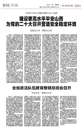 建设更高水平平安山西 为党的二十大召开营造安全稳定环境