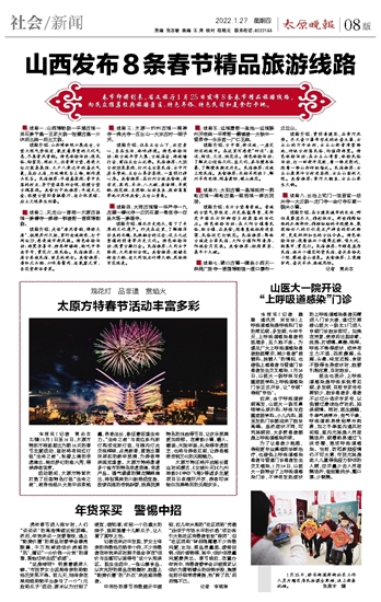 线路介绍:走读“唐风晋韵,锦绣太原”,梳理并州文脉,穿行老城街巷,打卡网红IP,感受城市新风貌。特色体验活动:游览崇善寺、柳巷钟楼街,逛吃中华老字号,赏花灯,观民俗。民宿推荐:太原古县城民宿、丽呈地球仓。美食推荐:清和元头脑、六味斋酱肉、老鼠窟元宵、杏花堂新派晋菜。