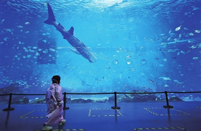 当日,一条仿生鲸鲨在上海海昌海洋公园下水,正式与游客见面。这条仿生鲸鲨由沈阳航天新光集团有限公司生产,体长近5米,采用锂电池驱动,最大游速0.7米/秒,最大下潜深度10米。多关节仿生推进技术、浮力调节技术和水下视觉技术的应用,加上表面覆盖的仿生蒙皮,使得仿生鲸鲨能高度仿真模拟真实鲸鲨动作,在水中自主完成直线、转弯、上浮、下潜、定深、嘴部张合等动作,还具备水下定位功能。 新华社 发