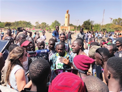 1月25日,示威者聚集在布基纳法索首都瓦加杜古的民族广场支持政变军人(手机拍摄)。