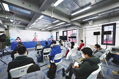 9时刚过,冬奥村准点开放媒体通道,记者经过安检与换证后顺利进入北京冬奥村。冬奥村内专门设置了媒体工作间,记者得以在这里取暖和完成设备充电。不过由于防疫要求,记者已不能进入冬奥村内部,仅能通过特别设置的媒体混合采访区域,一览北京冬奥村的全貌。