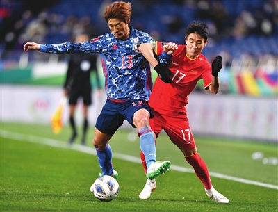打破场上僵局后,日本队持续向中国队球门施压,并创造出多次得分机会,中国队则很难组织起有效反击。上半场比赛日本队控球率高达71%,共有9次射门3次射正,中国队没有完成射门。