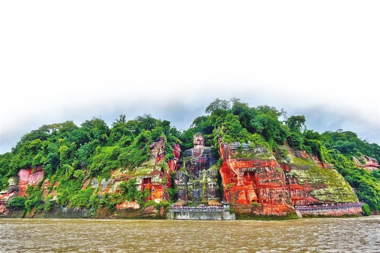 “佛是一座山,山是一座佛。”乐山大佛素来有这一美称。远远望去,凌云山峭壁爬满了绿植,把乐山大佛裹挟其间,大佛始终是凌云山的一部分。