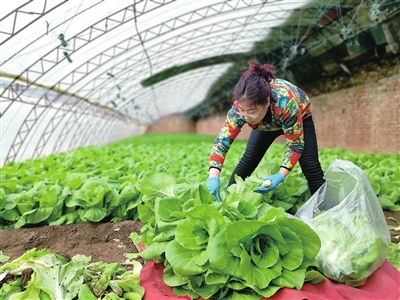 扫雪、卷帘、摘菜、装箱……一早上的工夫,村民成和平的衣襟便被汗水浸湿。棚外拉菜的小货车里,打包装箱的小白菜、油菜、香菜码放得整整齐齐。“年前市场行情不赖,一天得进城两三趟。”成和平一边将棉被盖在菜箱上,一边笑着说,脸上洋溢着丰收的喜悦。
