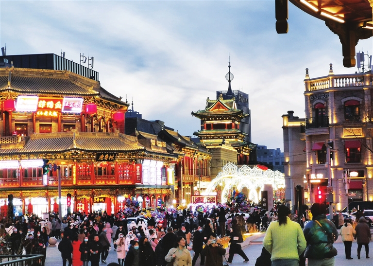 2月6日,正月初六,市民纷纷走出家门,或逛街,或购物,享受春节假期的快乐。图为钟楼街购物的人流。 记者 牛利敏 摄