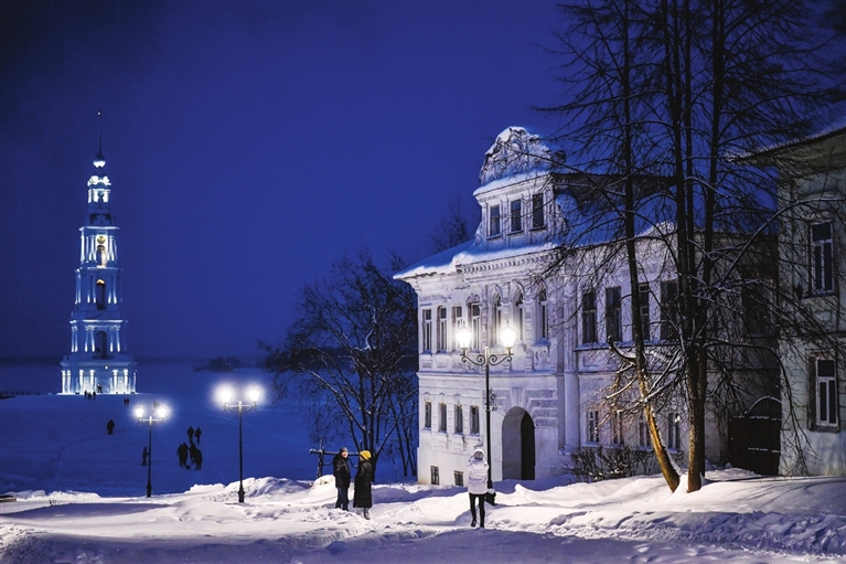 这是2月5日在俄罗斯特维尔州乌格利奇水库拍摄的维修后的卡利亚津钟楼。