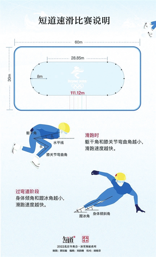 短道速滑全称短跑道速度滑冰,是在周长为111.12米的椭圆形赛道进行的冰上竞速运动。