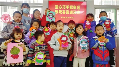 2月11日,文庙街道建设北路社区开展主题为“童心巧手祝奥运,欢欢喜喜迎元宵”的手工花灯制作活动。孩子们在社区工作人员的指导下,动手裁剪、拼接、粘贴……一只只形态各异的花灯“诞生”了。除了萌萌的“冰墩墩”外,还有贴纸花灯、剪纸花灯。当天上午,双塔寺一社区也组织了“寅虎闹元宵,一起向未来”手工DIY活动。