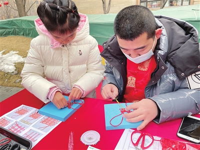 人头攒动的活动现场,“DIY灯笼”摊位、“糖画”摊位与“捏面人”摊位一样,深受未成年人喜爱和追捧,而“猜灯谜”摊位、“中国结”摊位则吸引了更多的成年人。