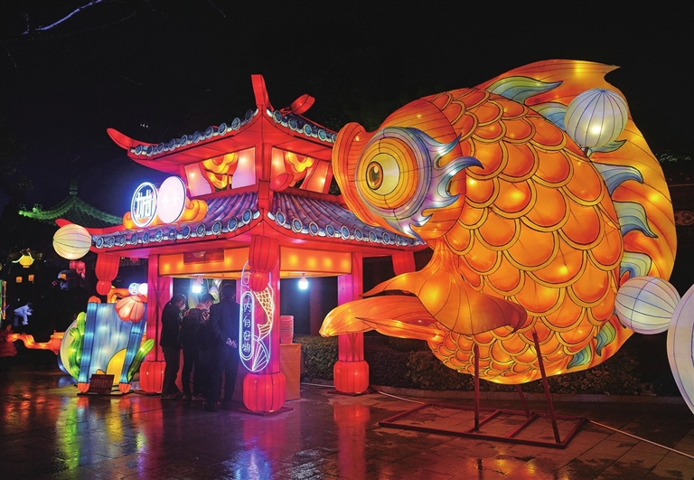 这是2月12日在南昌滕王阁景区拍摄的灯会一景。