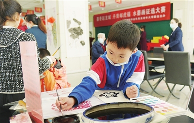 2月16日,太原邮政分公司邀请驻地学生参加“绘笔庆祝冬奥”活动,为冬奥会加油。 徐浩轩 宋淑淇 摄