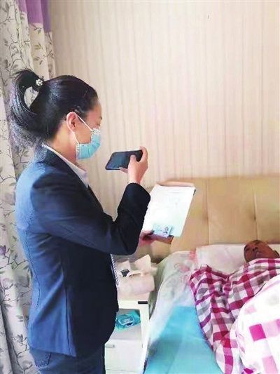 2月16日,小店区政务大厅社保窗口工作人员来到丽华甲第苑小区,为一位身患疾病长期卧床的老人办理养老待遇资格认证。因其有特殊情形无法办理认证,社保窗口工作人员在了解到该情况后,及时上门为其解决了难题,真正把服务送到了人民群众身边,把温暖送到了特需人群家中。 李晓并 摄