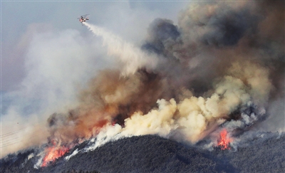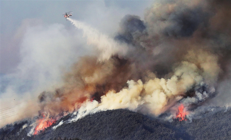 2月16日,直升机在韩国庆尚北道一处森林灭火。 新华社 发