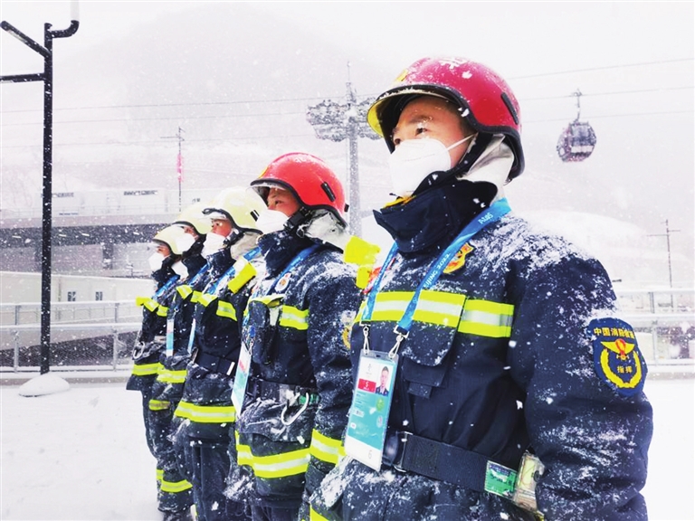 除了前置执勤,国家高山滑雪消防安保团队还调阅查看各场馆防火档案,对固定消防设施进行抽查测试,对各业务领域人员累计开展消防安全服务指导35次,整改火灾隐患56处。
