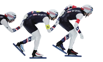 2月15日,速度滑冰男子团体追逐赛半决赛,美国选手正在参赛。 |