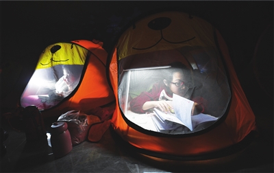 2月17日晚,省城一家书店内,孩子们正在帐篷里静享夜读。主办方希望通过这种方式引导孩子热爱读书、热爱学习。 记者 邓寅明 摄
