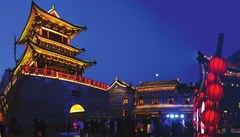 虎年元宵夜,钟楼街上月圆人潮涌,尽现太原城的繁华盛景。 杨靳葆 摄