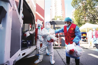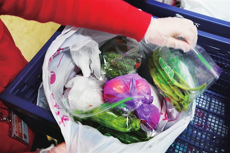 疫情发生以来,江苏苏州工业园区为管控小区居民提供生活必需品保供配送服务,动员多家大型商超为封控楼栋居民提供“蔬菜生鲜包”,满足居民生活所需。 新华社 发