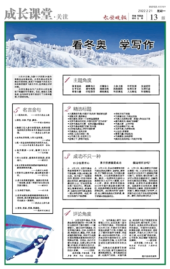 北京冬奥会也为广大的中小学生提供了海量的写作素材。在此,编者从主题角度、金句和评论等方面进行了分类和整理,与读者共飨。