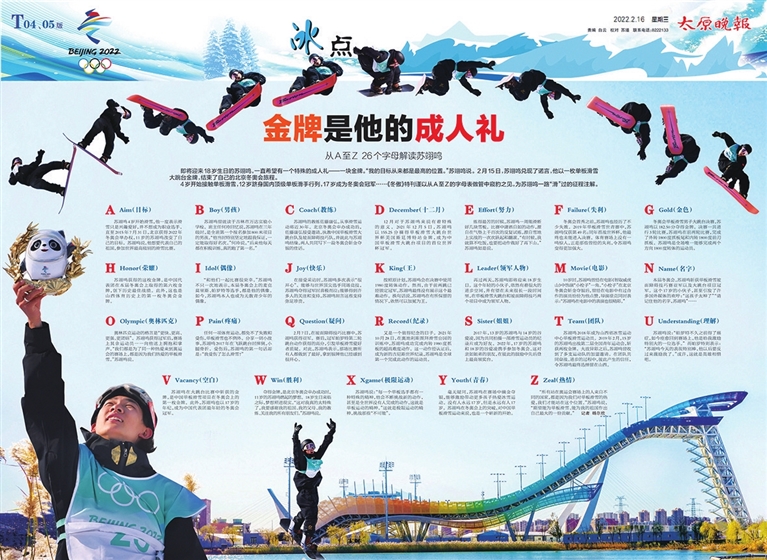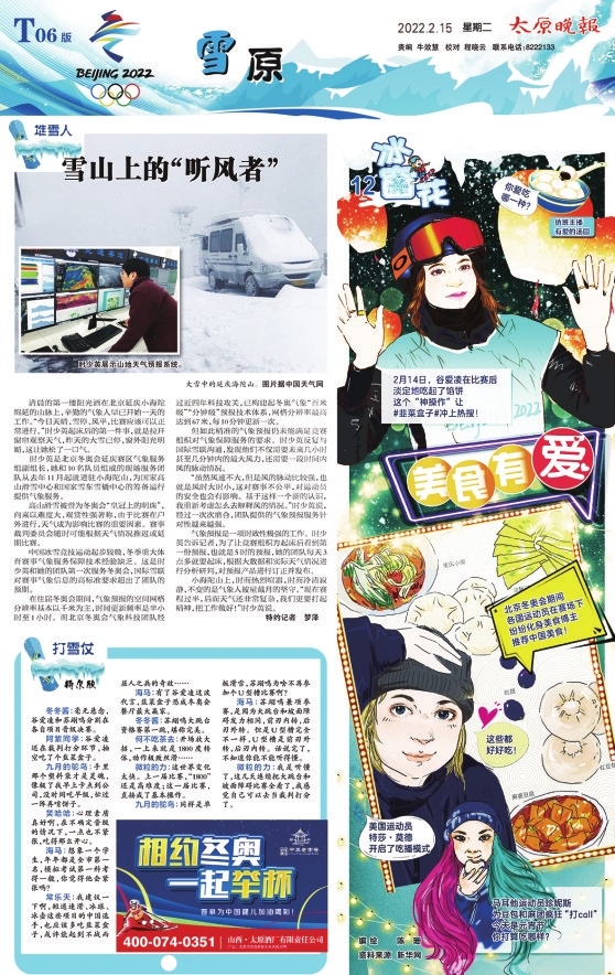 了解赛事情况,一定不能错过“北京烤鸭”的内容;想看看花絮趣闻,翻开“冰糖葫芦”了解一下;抒发激昂的情绪,可以在“铜锅涮肉”找到共情;感受诗情画意,不妨去“冰窗花”品味一番;冬奥会上的太原故事,则由“堆雪人”为您娓娓道来……