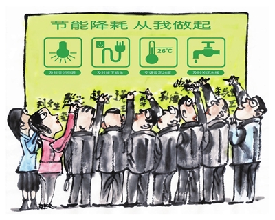 走进浙江省杭州市市民中心,“简约适度 绿色办公”“垃圾可变宝 节约又环保”等标语映入眼帘,办公区各楼层严格垃圾分类,各类型垃圾桶一字排开。“我们楼顶有4460块光伏面板,每年发电100多万千瓦时;安装了智能化控制系统,空调、电灯等4000余台设备全部实现远程设定开停机与巡更、错峰控制,大大节约了能耗。”有关负责人表示。(《人民日报》2月21日)