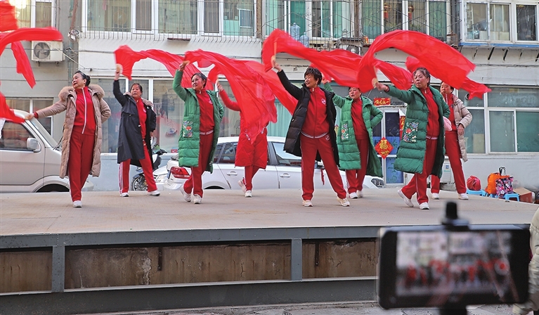 2月19日,水西关三社区在水西苑内举行“舞动春风”全民健身文化活动,辖区文艺爱好者、居民积极参与,表演了民族舞蹈、歌曲等节目。 张昊宇 摄