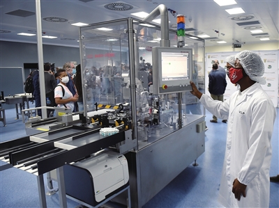 这是“新冠疫苗技术转让中心”合作方工作人员在南非开普敦的实验室工作。 新华社 发