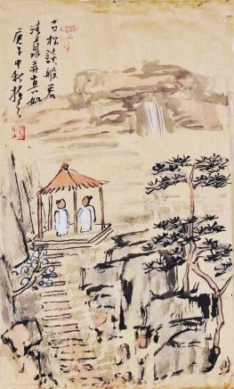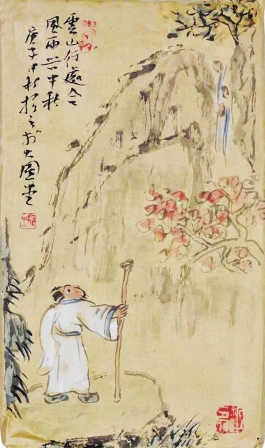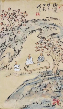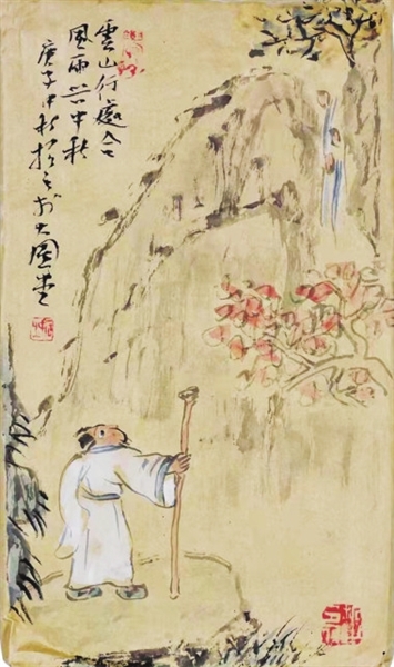 拓之勤快,大画小画,总在画。似乎他见不得纸,哪怕巴掌大一片纸,见之即犯画瘾。他曾经在各种书签、名片、宣传页等等的豪华纸上作画,不是宣纸,再好,并非适宜作画,尤其不宜作国画,他却作了,且还不错,我曾著小文赞他。想不到他又在茶衣上画了,且比硬纸片上那些更好。那个多为速写类,这个真的是画了。