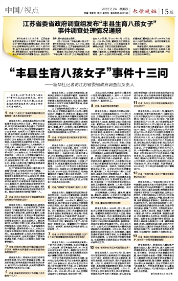 江苏省委省政府调查组发布“丰县生育八孩女子”事件调查处理情况通报