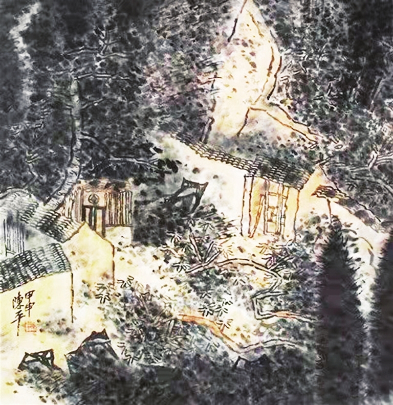 陈平的画儿是梦幻的,主观的,是抒情的诗歌,而不是描情状物的小说,说的不是《世说新语》里的人情世故,而更像是庄子上天入地无可无不可的味道。陈平清新而润泽,而这清新和润泽都被大黑大墨统治着,陈平的暗黑之中有各种美丽的纹理在诱惑着你,大黑之中忽然会让藤黄出来一亮,个中梦幻般的诡异亦是诗歌般的诱人。陈平有这样的本事,他能把一幅山水画得蛮像一幅古旧的壁画,而且是古寺里的壁画,但细细看过去,传统的一切笔墨风月都在里边,而且,更重要的是,在里边,还找得到当代中国人的美好情愫。别人画幅中的水分是一抹一抹地洇开,或者是摊在那里永远不让它干。而陈平画中的水分是在那里完全变成了雾,是雾状,雾着,一雾一雾地喷着。