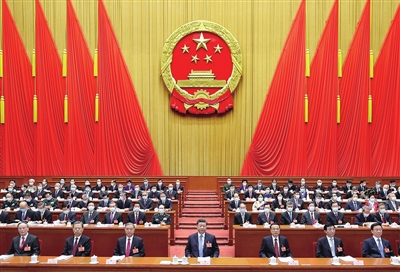 习近平、李克强、汪洋、王沪宁、赵乐际、韩正、王岐山和大会主席团成员在主席台就座。