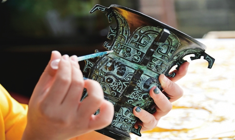 制作过程中,庄秋燕将传统技法与当代审美结合,以生活用具为载体,创作出了鲜活灵动的艺术作品。