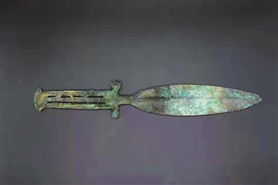M32的陶器组合陶罐、陶盆、三足瓮,这三件陶器与青铜短剑,形制都很特别,可比较的同类器型较为少见。青铜短剑的镂空剑柄、柳叶形矛身的作风,显示出浓郁的北方草原文化气息。目前可见与之形制最接近的有两件,均是在俄罗斯东北部的雅库特地区采集所得。这类铜剑独特的形制造型,为国内首次发现。