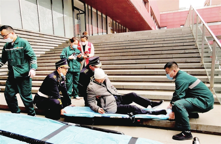 3月15日11时许,万柏林区十二院城社区和物业的工作人员及时伸出援手,帮助不慎摔倒受伤的老人联系家属、拨打急救电话,使其转危为安。 记者 牛利敏 摄