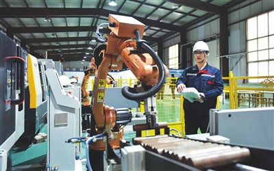 3月17日,太原市交通学校职业教育实训基地,实训人员正在通过数控机器人进行产品设计及操作练习。该校加大对实训设备的投入,促进职业教育与社会需求紧密对接,提升学员就业竞争力。 记 者 邓寅明 摄
